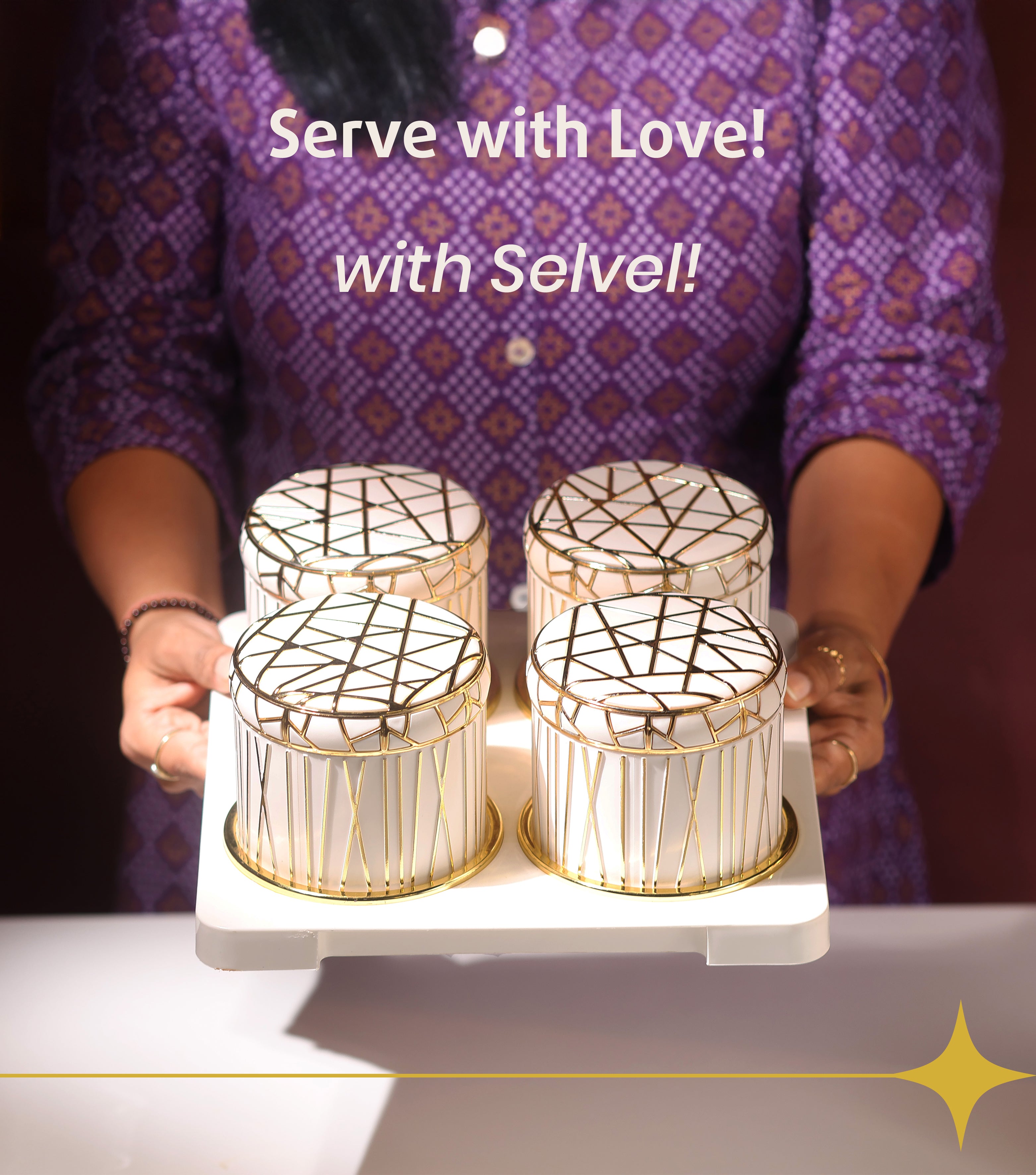 Selvel Royal Linex White Serving Set – 4-Piece Airtight Dry Fruit & Snack Container (430ml Each)