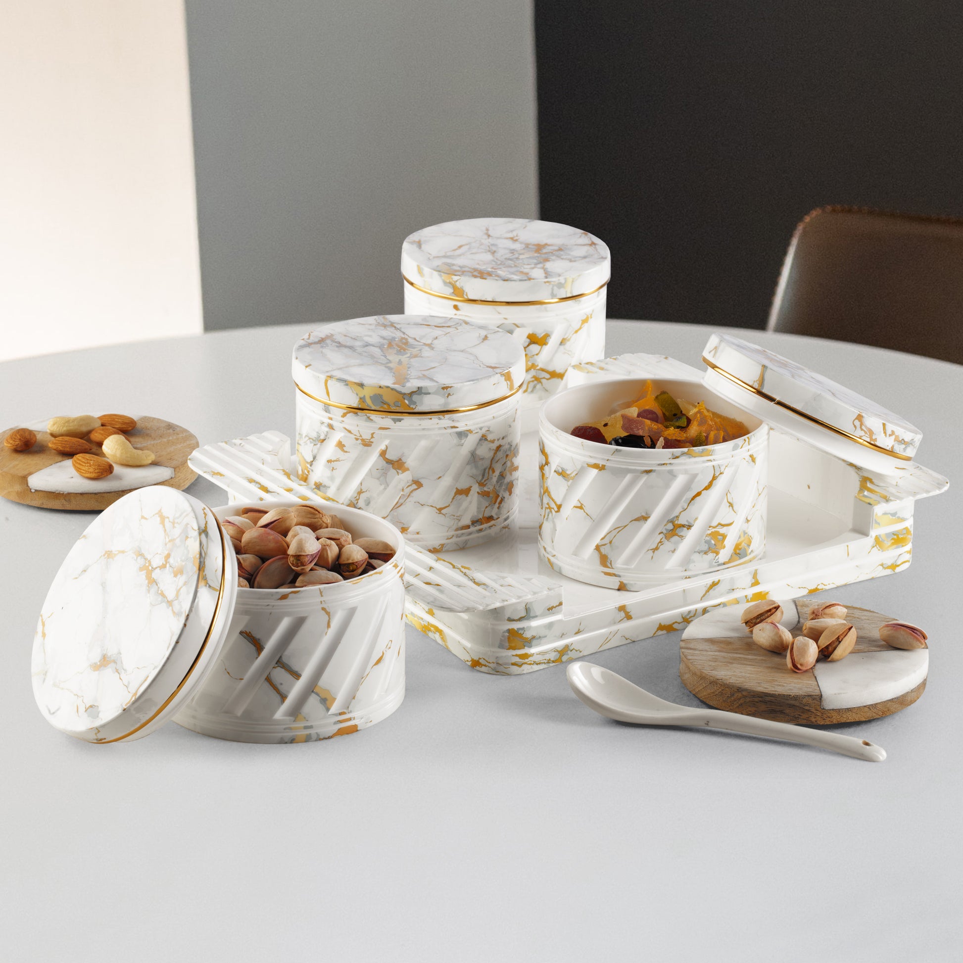 A premium 4-piece serving set in Italian White, designed for storing and serving dry fruits, snacks, and sweets in style. Perfect for both daily use and gifting.