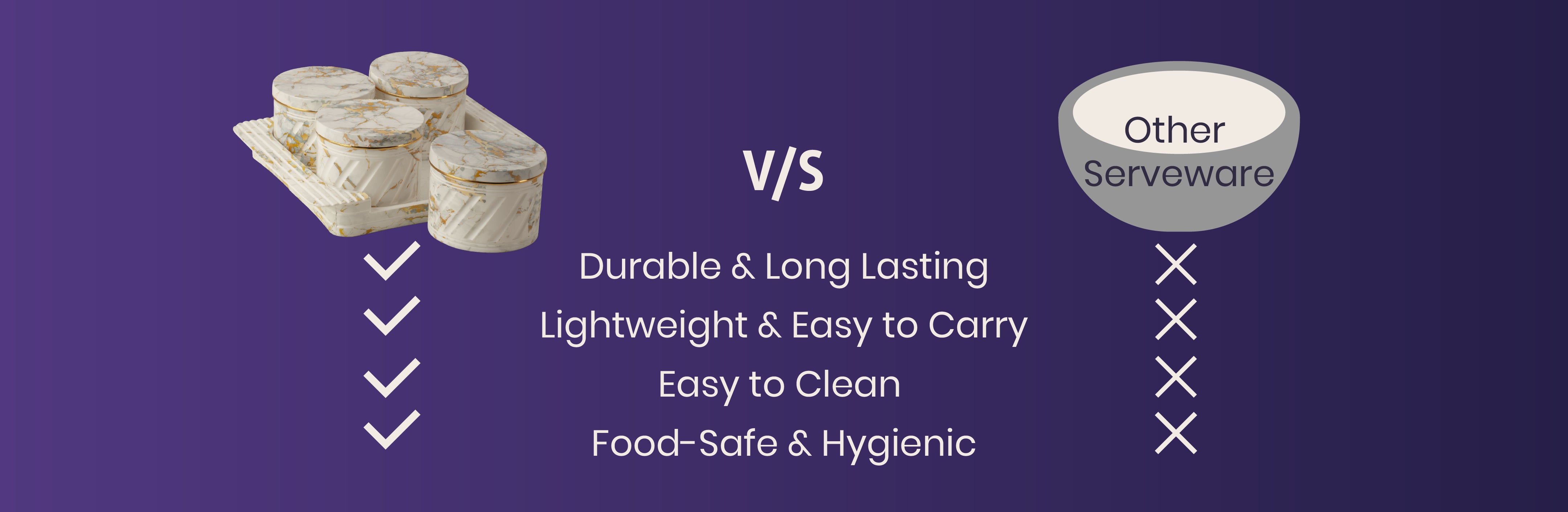 Its elegant white finish adds a premium, modern touch to your serving table.