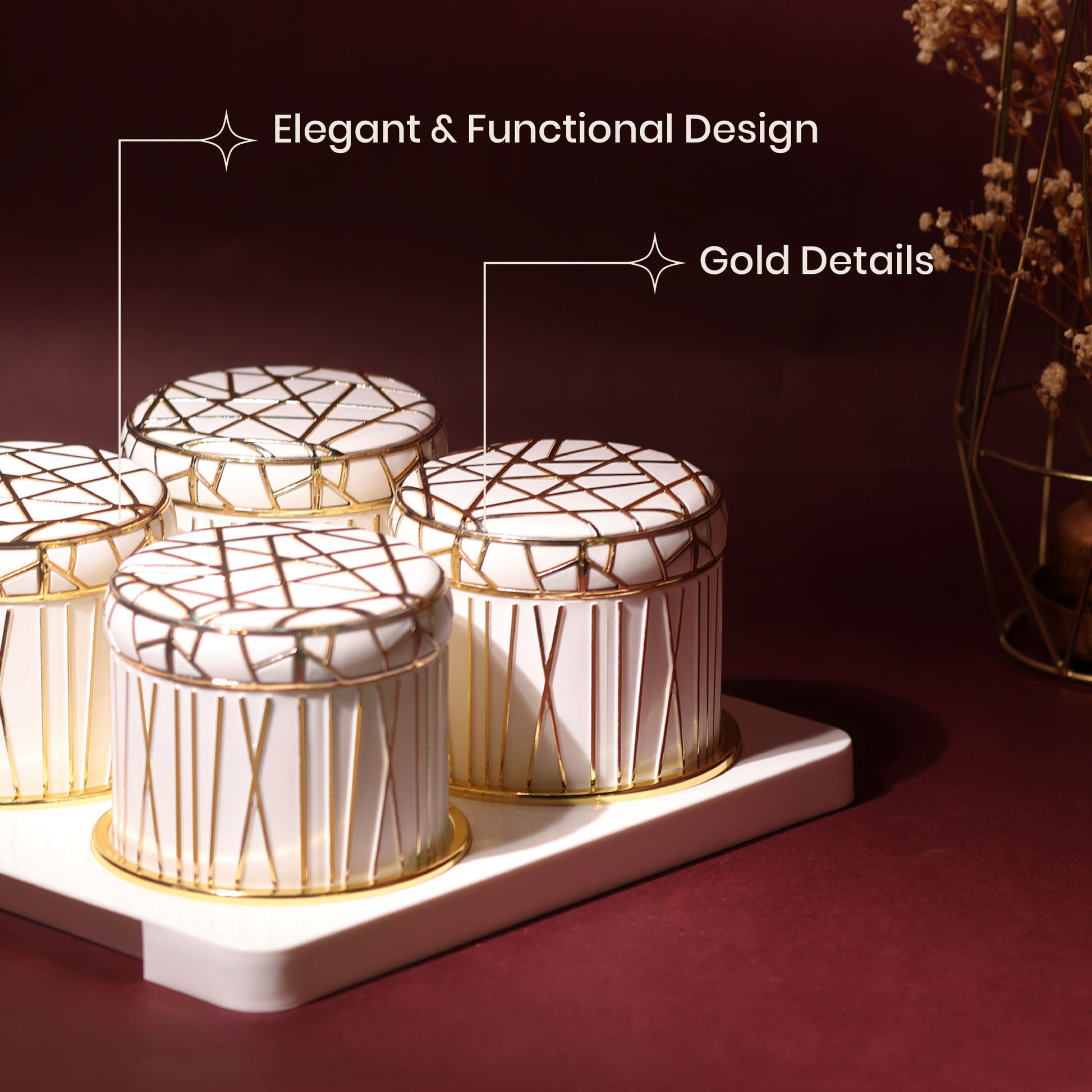 Selvel Royal Linex White Serving Set – 4-Piece Airtight Dry Fruit & Snack Container (430ml Each)