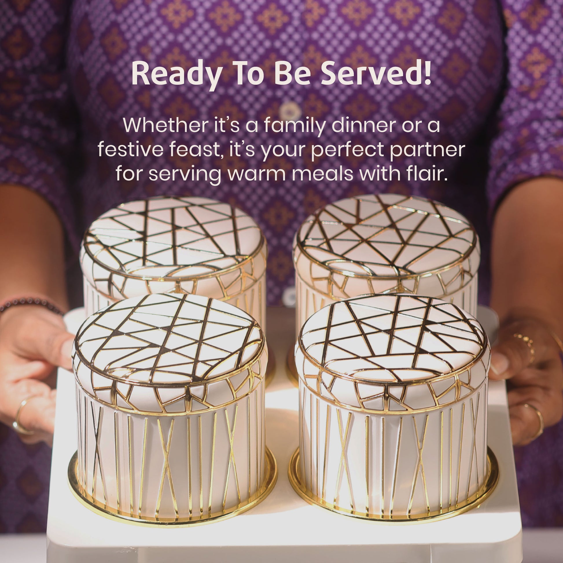 The Selvel Royal Linex White Serving Set combines timeless design with airtight freshness — ideal for serving and gifting dry fruits, sweets, and munchies.